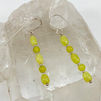 These earrings feature Olive Jade beads accented with sterling silver beads.